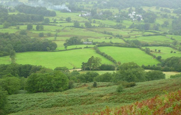 Ade Harris surveyed a likely area for a forced landing and the only place that could really have been considered for a safe landing would be these green fields.