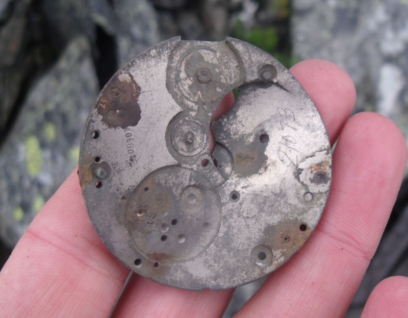 Part of either the aircraft clock or part of a pocket watch carried by one of the crew found by my wife.