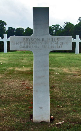 Engineer - S/Sgt Bryson R Hills (19040312). Of Santa Clara County, California, USA. Buried Madingley Cemetery, Cambridge, England (F/4/90). Air Medal with 3 Oak Leaf Clusters.
