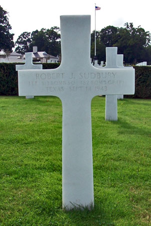 Co-Pilot - 1/Lt Robert J Sudbury (O-726503). Of McLennan County, Texas, USA. Buried Madingley Cemetery, Cambridge, England (D/3/17).