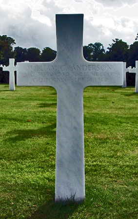 Pilot - Cpt William C Anderson (O-432027). Of Los Angeles County, California, USA. Buried Madingley Cemetery, Cambridge, England (F/5/85). (813th B.S.Commanding Officer). Air Medal.