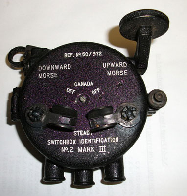 Two further pieces of the aircraft with Air Ministry markings. Left is a Morse Key indentification switchbox and right is a gun camera identification plate.
