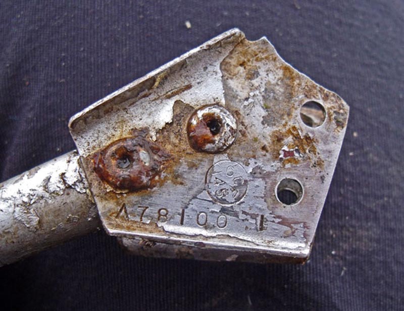 to be seen. An identical piece of aircraft shown in the photograph above was found at Hurricane AG275 in August 2012.