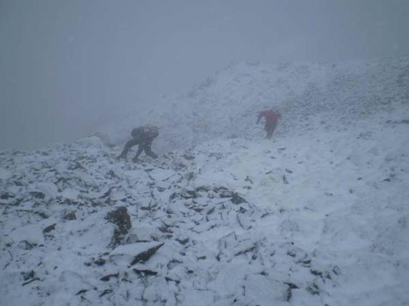 success. In April 2008 we were in the area again but due to a heavy snow shower we called off a higher level search of Brim Fell because of the conditions but had located