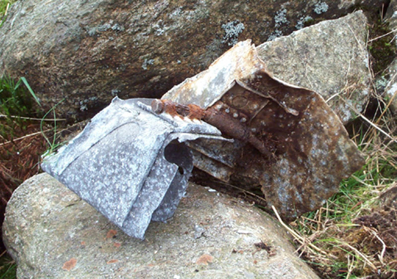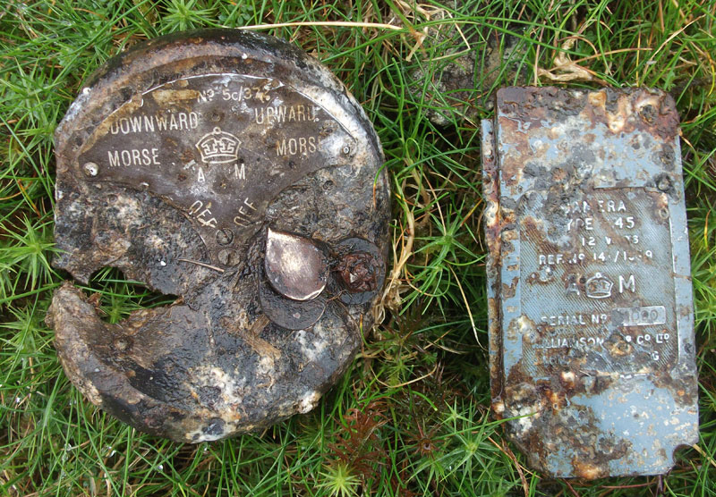 search in June 2002 we came across scattered parts in Gill Cove; above Levers Water. In the years that followed further searches for aircraft remains were made without much