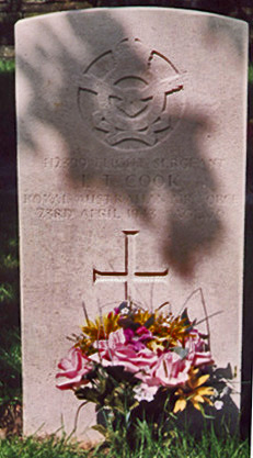 Pilot - F/Sgt Leonard Thomas Cook RAAF (412399), aged 20. Buried Haverigg Churchyard, Cumbria.