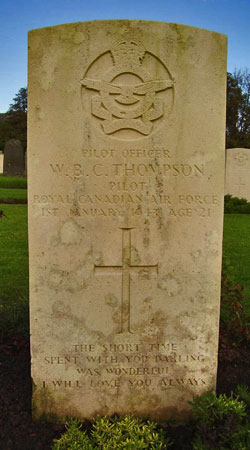 Pilot - P/O William Basil Cheale Thompson RCAF (J/16171), aged 21. Buried Causewayhead Cemetery, Silloth, Cumbria.