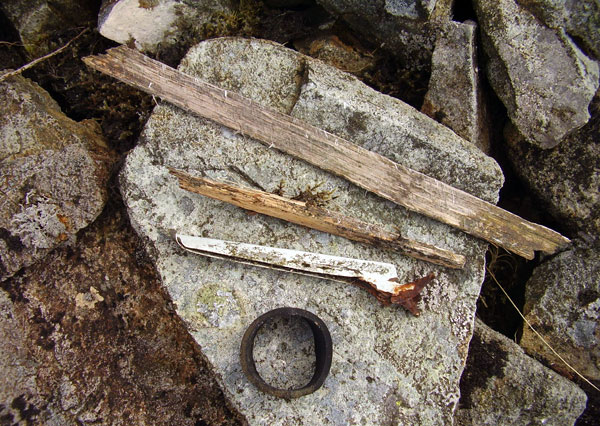 A number of small pieces of wood and metal were located at the crash site in April 2011, most of the wood is showing the signs of being on the mountain for the last
