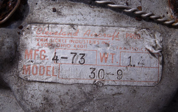 in 1973 by Cleveland Aircraft, Ohio and this part is still made by the same company today. The photograph below shows a plate from the aircraft's generator manufactured