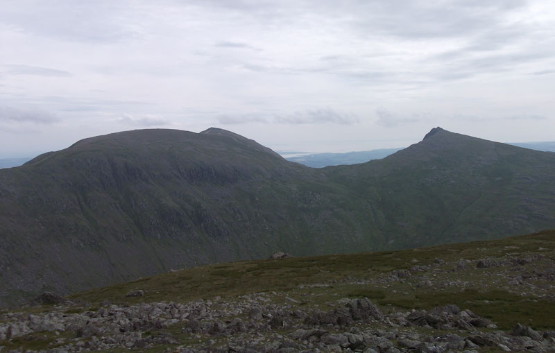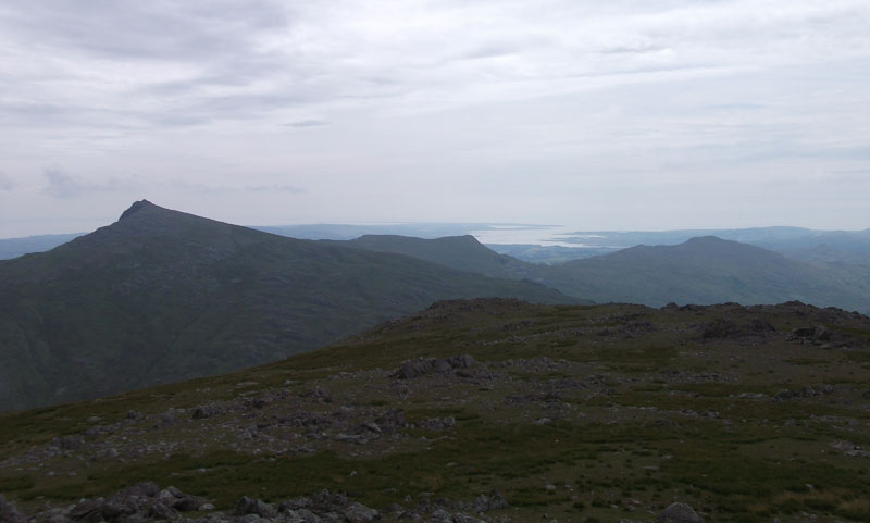 These two photograph are taken from Harter Fell looking roughly south over the Coniston Fells and towards Morcombe Bay. The photograph shown above shows Brim Fell with The Old Man of Coniston just left of centre and with Dow Crag on the right. The photograph below shows the area to the right of that shown on the photograph above and shows Dow Crag on the left, Brown Pike in the centre and White Maiden on the right. I suggest that the crew of the Beechcraft were trying to fly along the coastline shown at the back of these two photographs but had drifted too far in land and flew into the end of the Coniston range while attempting to re-find the coast.