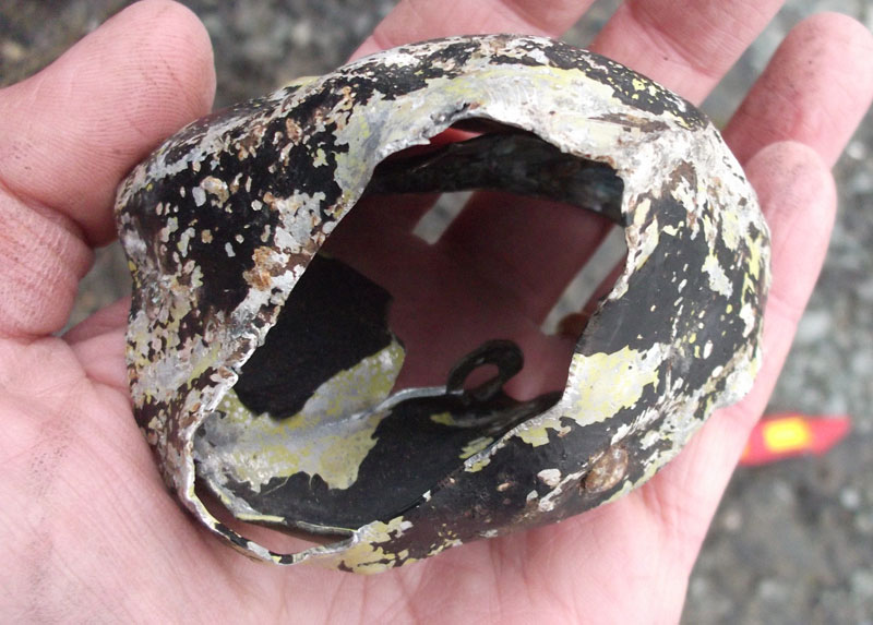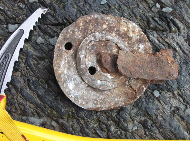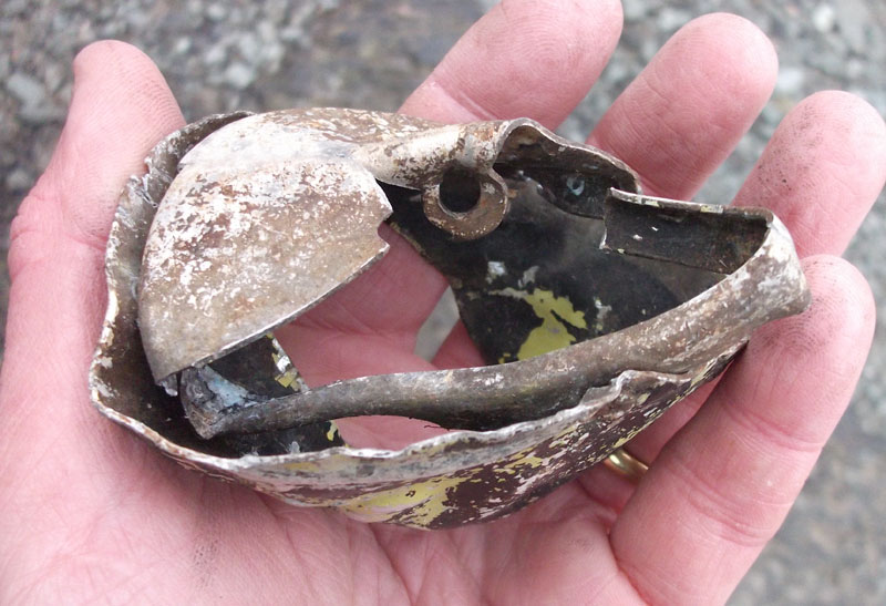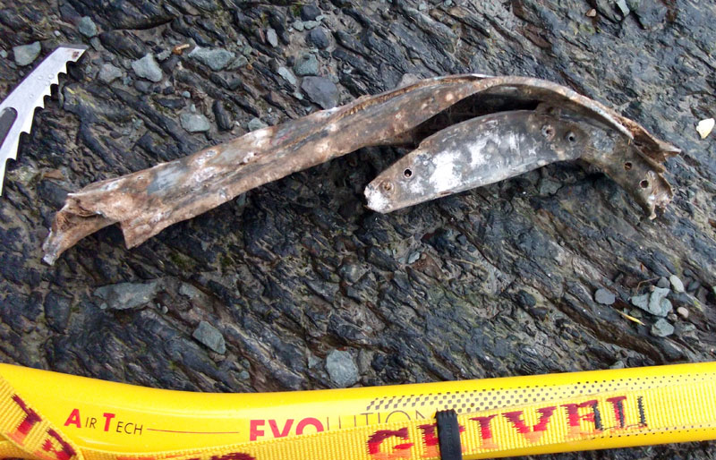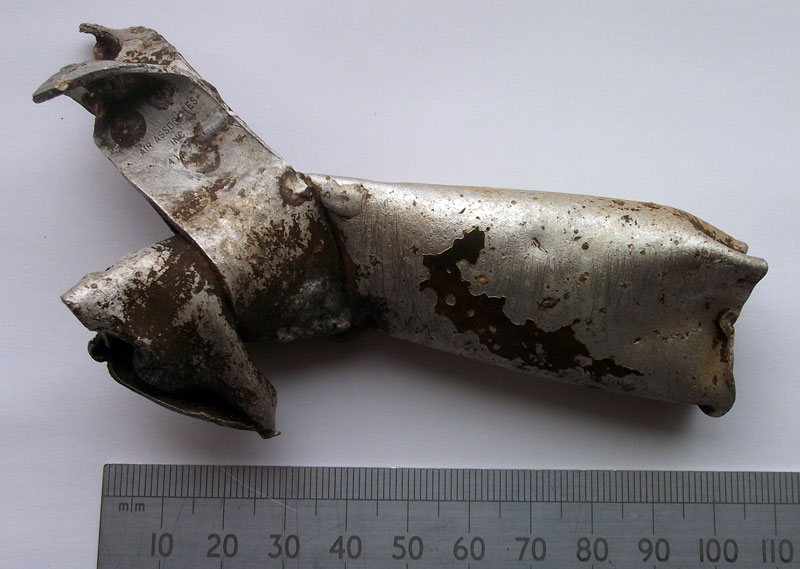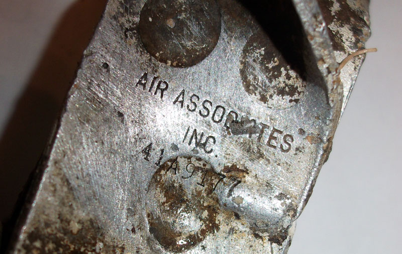 The items shown on this page which were located at the crash site and may help work out the exact aircraft type, all these items do not appear to be engine-related. I would welcome any contact from anyone who may be able to give any further details about any of the parts shown here. There are also small pieces of alluminium which look to have been made in a hurry, ie not in a factory, and cannot have passed any form of factory inspection process and I suspect they were part of a modification or repair which took place after the aircraft was made. I will continue to add photographs to this page. I have created a page to show the engine-related finds