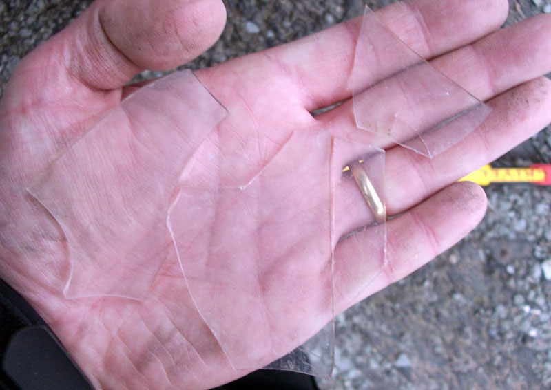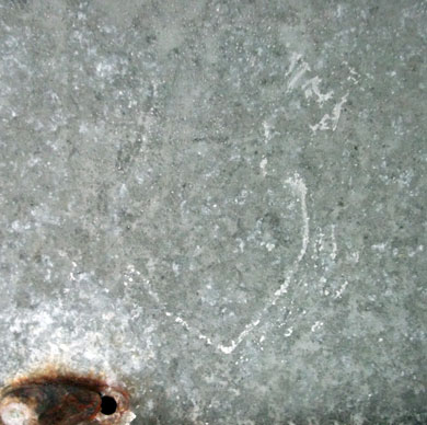 A large panel shown above which must be the inside face of the panel because of the paint overspray. The edge detail and a possible faded logo on the outer side of the panel are shown below.