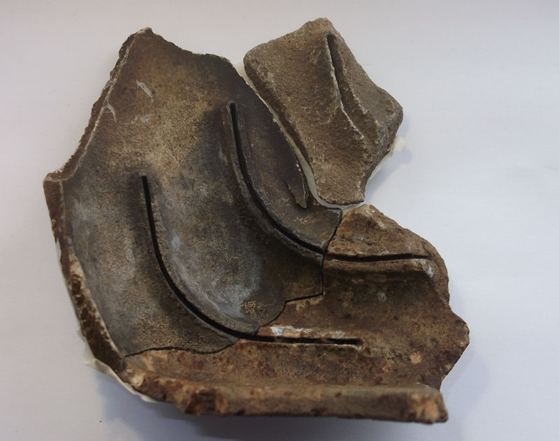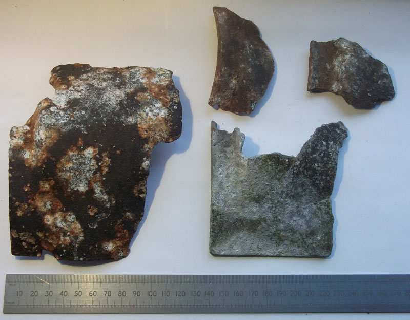 Unidentified thin cast covers for something. They are a slightly curving and have a centrally domed appearance.