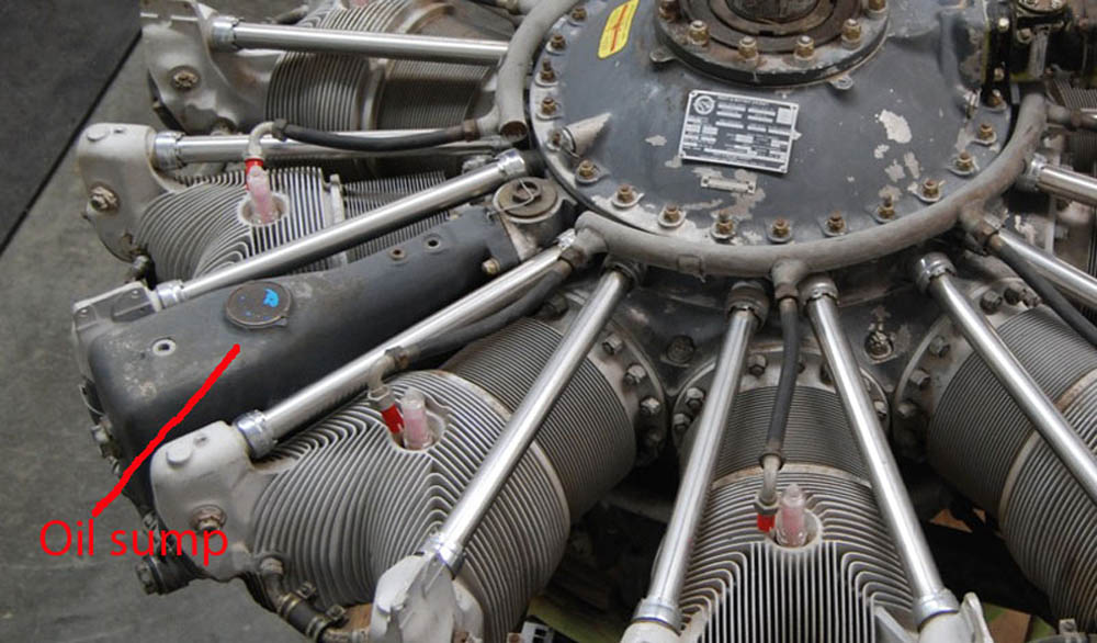 I believe that this is the front part of the Wasp engine oil sump and can be seen in the engine photograph above.