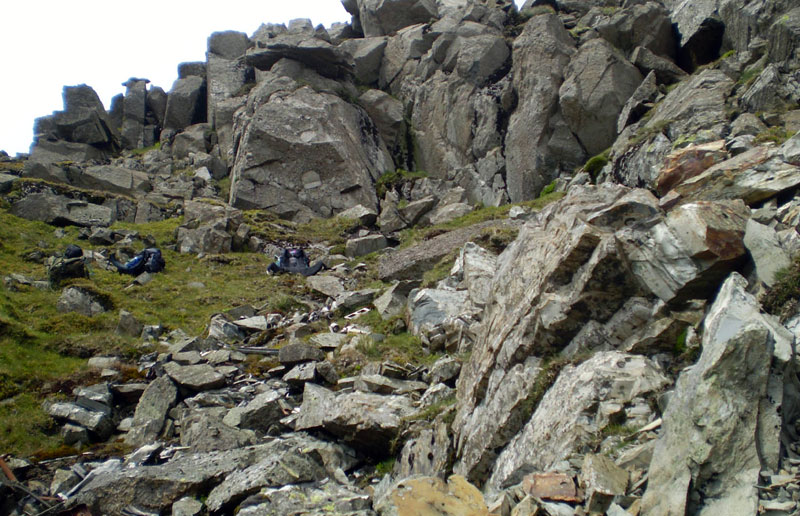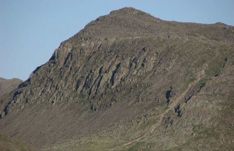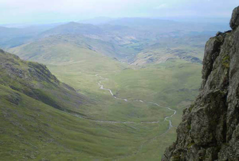Bowfell from the Crinkle Crags area (above) and the view from the crash site (below) in May 2007.