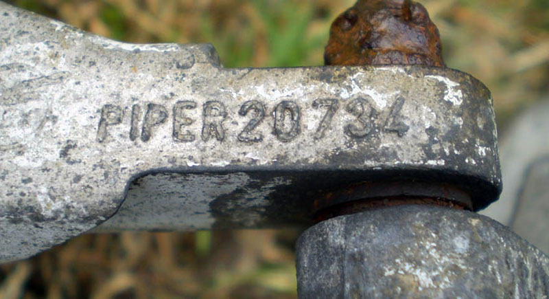 One of the undercarriage legs and some of the Piper markings shown on it.