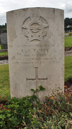 Air Bomber - F/Sgt Ervin Albert Loppe RCAF (R/176010), aged 19. Buried Troqueer Cemetery, Dumfries.