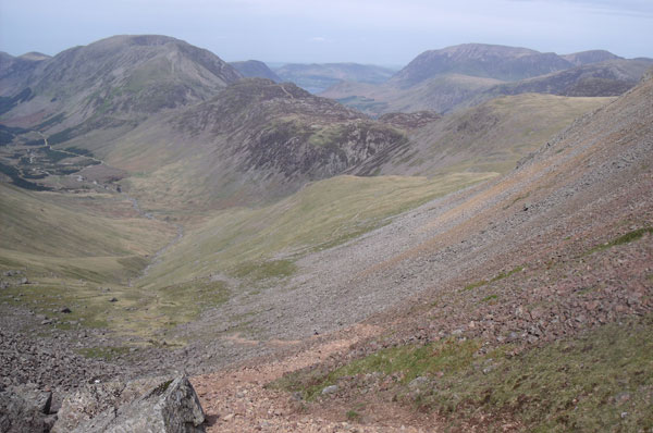 Windy Gap is the pass between Great Gable and Green Gable shown in the centre of the photograph above.