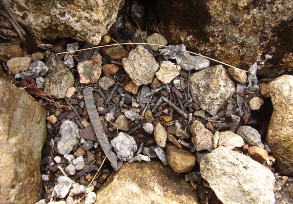 Small fragments of the aircraft found amongst rocks at the crash site when I located it in April 2011.