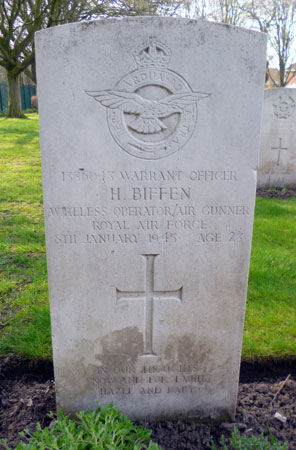 Wireless Operator / Air Gunner (Instructor?) - WO Harold Biffen RAFVR (1336043), aged 23, wife of Bishopsteignton, Devon. Buried Blacon Cemetery, Chester (A/27A).
