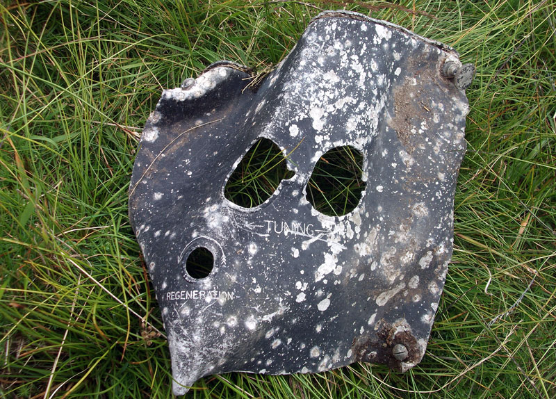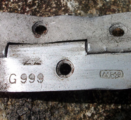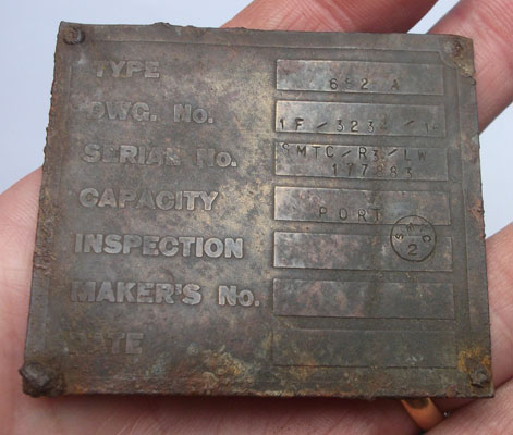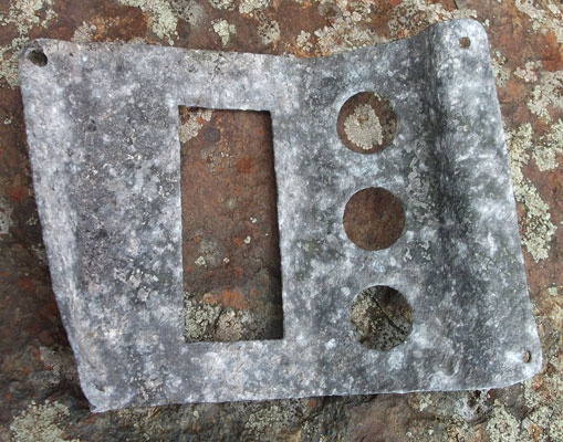 A plate from a fuel tank and the punched face of an item of equipment (as yet unidentified).