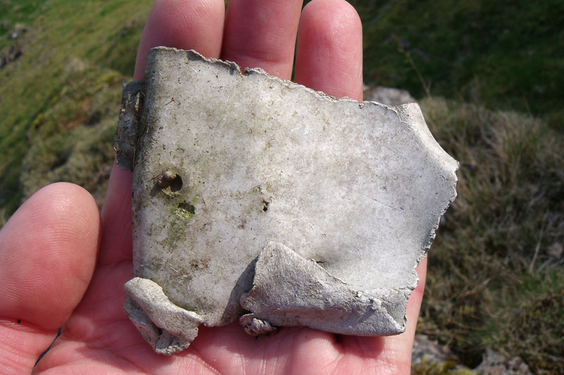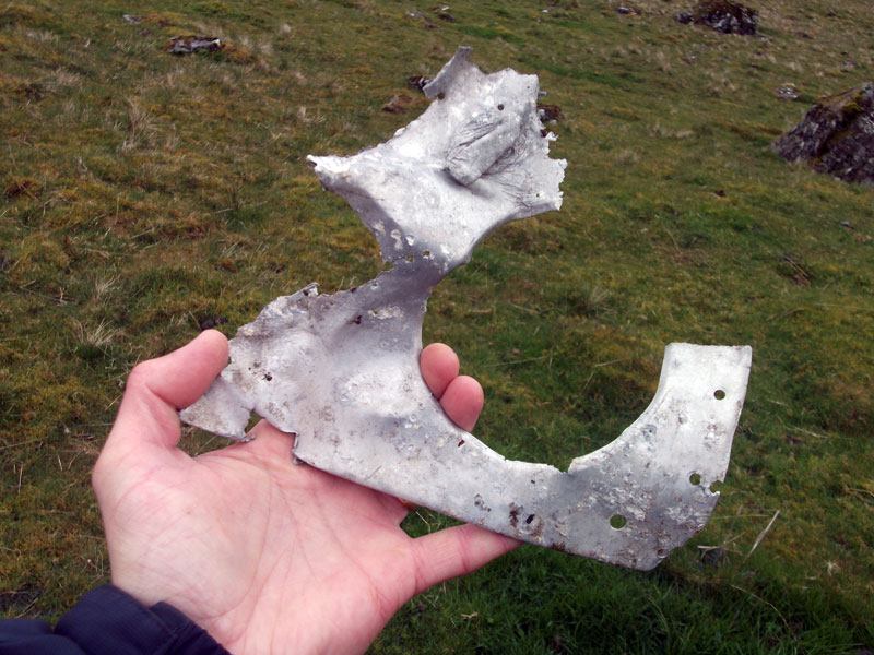 Military historian Ade Harris and I re-visited the crash site in May 2012 and located a number of small fragments of the aircraft in a boggy area on top of