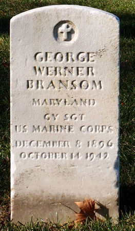 George Werner "Pete" Bransom was born on 8th December 1897 in Forestville, Maryland to William Skidmore Bransom and Florence Cornelia Bransom (nee King). In the 1910 census he is listed as living in Washington with his parents and four of his siblings (Robert, Alice/Alta, Florence and Henry). His brother Henry Wilton Bransom rose to Colonel in the USMC and his obituary stated that he was one of seven children so the names of two siblings are not yet known. George Bransom joined the US Marine Corps in August 1922 and served as a pilot with the VF-9M, he flew in Nicaragua during the US occupation and it is believed that he survived a flying accident when he crashed into a mountain in Nicaragua.