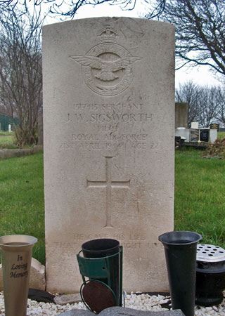 Pilot - Sgt John Walter Sigsworth RAFVR (1517415), aged 22, of Acklam, Middlesbrough. Buried Middlesbrough RC (Thorntree) Cemetery, Yorkshire (A/108).