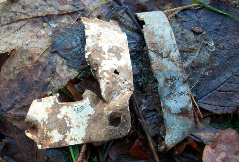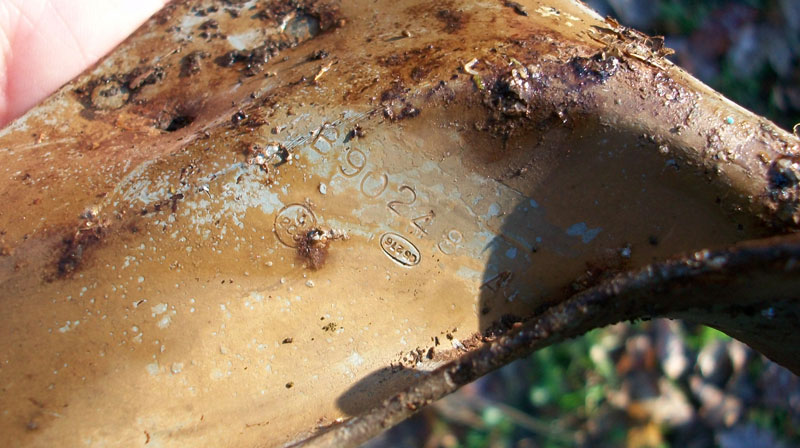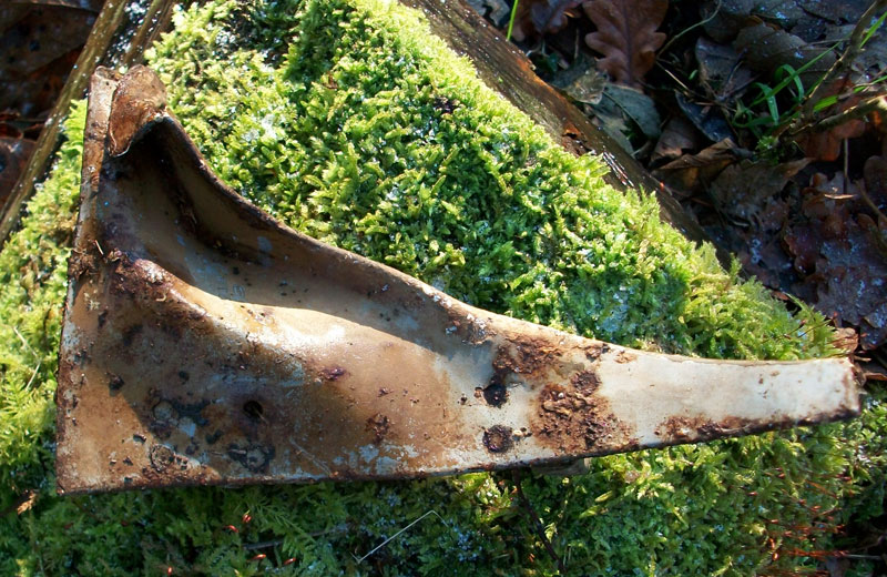 The largest find on the surface at the site is this small panel which I think is one of the small panels that surround the exhaust stacks.