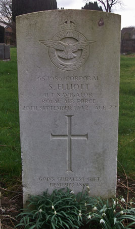Navigator U/T - Cpl Sydney Elliott RAFVR (657986), aged 27. Buried Ovingham Burial Ground, Prudhoe, Northumberland.