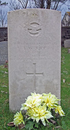 Pilot - WO Thomas William Jupp RAFVR (909889), aged 23, of Compton, Surrey. Buried Haverigg Churchyard, Millom, Cumbria.