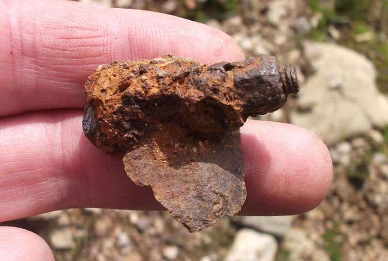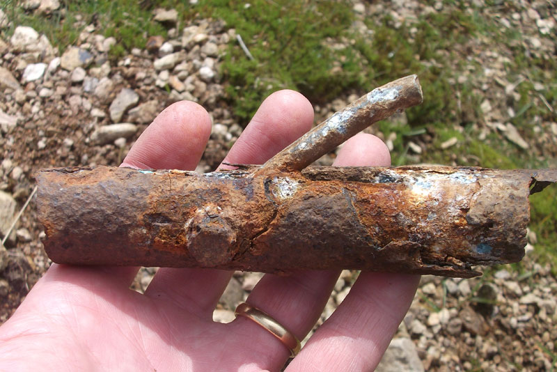Two small fragments of what must be fragments of this Anson were located by Ade Harris and I during a series of visits to the area between January and May 2012. Both fragments certainly appear to be parts of aircraft similar to other fragments of Ansons seen at other crash sites. These two pieces were found at the top of Mill Gill but the aircraft did not crash there, exactly how they got into this gully is open to question but they were probably caught on sheep wool and dragged down. Information added to the "Aviation Safety Network" website in March 2012 stated that this aircraft crashed on nearby Watson's Dodd, however no other reference to this location has been found anywhere. Ade Harris' witness stated that the aircraft crashed on top of Great Dodd and I dismiss the Watson's Dodd reference.