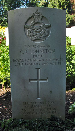 Crawford Johnston was the son of Frank Lee Johnston and Elizabeth Margaret Johnston (nee Ferguson) and was born in Toronto, Ontario, Canada on 30th March 1921. As a boy he attended school in the Windsor, Ontario area. Both he and Frank Henry had attended Malvern Collegiate Institute in Toronto and possibly knew each other prior to enlisting into the RCAF. He was still a student when he enlisted for RCAF service in Toronto on 8th January 1941 and received basic training in Canada. He was awarded his Pilot's wings on 11th November 1941 and may then have served as a staff pilot at Bombing and Gunnery Schools in Canada before posting overseas in November 1943. He received a commission to the rank of P/O on 25th May 1944 and later rose to F/O on 25th November 1944. On arrival in the UK he would train at 20 (P)AFU, 82 OTU, 86 OTU and 1659 HCU before posting to 408 Squadron on 4th October 1944.