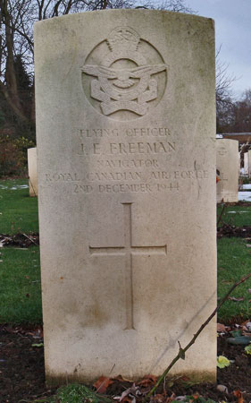 Navigator - F/O John Ernest Freeman RCAF (J/39402), wife late of Vancouver, British Columbia, Canada. Seriously injured, died on 2nd December 1944. Buried Stonefall Cemetery, Harrogate, Yorkshire.