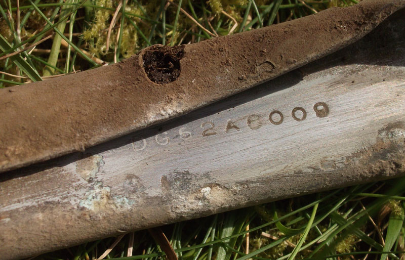 The only fragment of alluminium with a part number that we found on the surface on the rock outcrop.