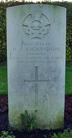 Observer - P/O Denis John Richardson RCAF (J/6134), aged 22, of Ottawa, Ontario, Canada. Buried Silloth Cemetery, Cumbria.