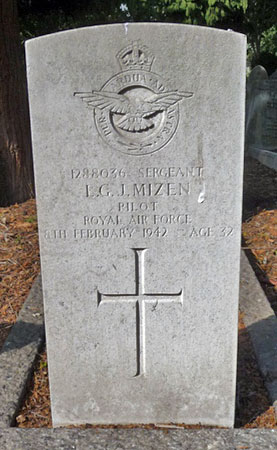 Pilot - Sgt Leslie George John Mizen RAFVR (1288036), aged 32, of Osterley, London. Buried Heston Churchyard, Middlesex.
