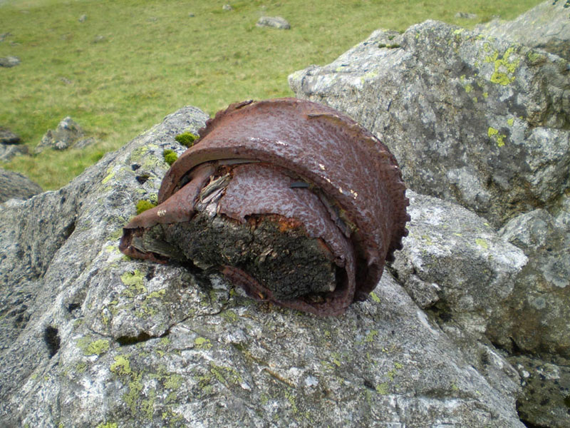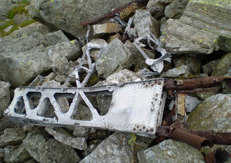 Will Lund and I first located this crash site in May 2003 and then we returned in May 2007. The impact point was high up on the solid rock, the aircraft exploded and the majority of wreckage fell down the scree though smaller burnt items are jammed in rocks higher up the scree where it fell to after the impact.