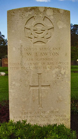 Air Gunner - Sgt Richard Woffendale Lawton RCAF (R/72939), aged 24. Buried Silloth Cemetery, Cumbria.
