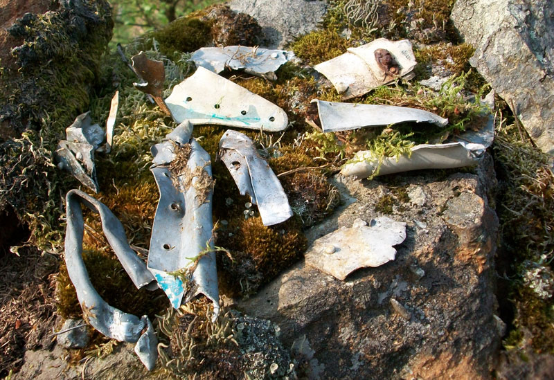 I visited the site at Easter 2011 and a few small fragments are still to be seen scattered around the area of the crash.