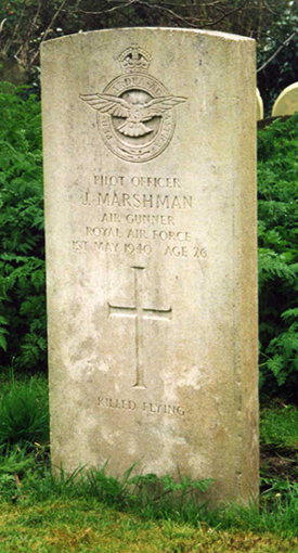 sadly was killed when Wellington R3154 crashed near Thorgill and was buried at Marham Holy Trinity, Norfolk, where his unit was based at the time. At the time John Marshman (jnr) died