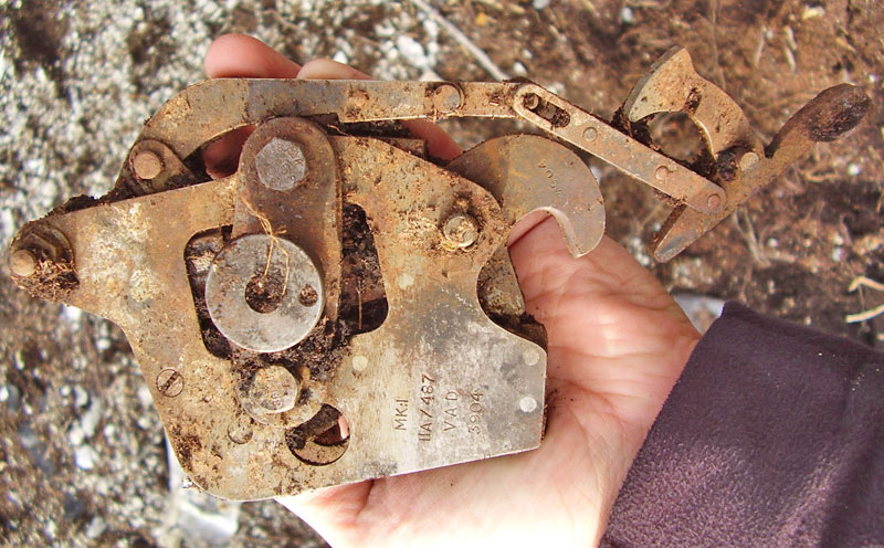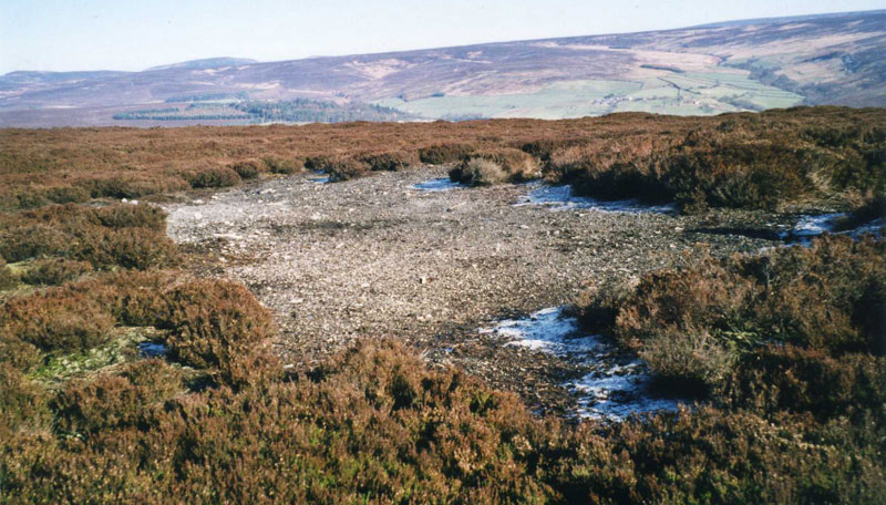 The crash site of Whitley T4138 as it was in February 2003 when I first visited. This is a good example of how checking a variety of hit and miss locations can bring results. The site was found the site by chance a few weeks previously whilst attempting to locate a Wellington (which would later be found on Hawnby Moor). The area where this Whitley crashed still shows severe signs of what happened. A large burnt out is still visible and there were many small but interesting items on the ground, sadly much of it was too badly damaged by the post crash fire to be identifable.