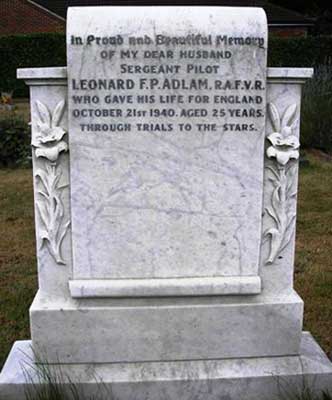 Pilot - Sgt Leonard Frank Percy Adlam RAFVR (745662), aged 25. Buried Farnborough Cemetery, Hampshire.