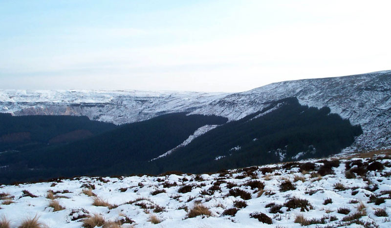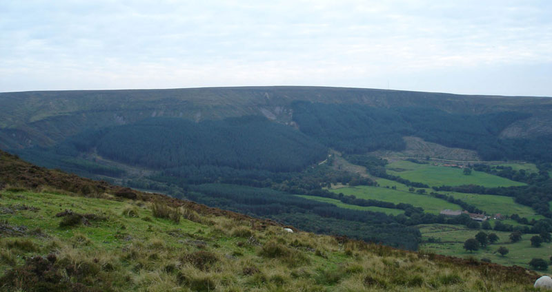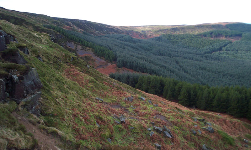 The crash site is in the centre of both of these photographs, the top one is taken from the west of the site and the bottom one is taken from the north. Both were taken before the woodland was felled in 2012.