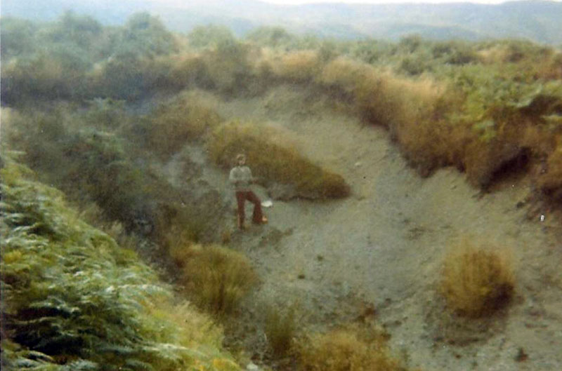 A photo of further wreckage in a gully taken in the 1970s, this are later part of the woodland area below the main site. My thanks to Mr Graham Sharpe for this photograph.