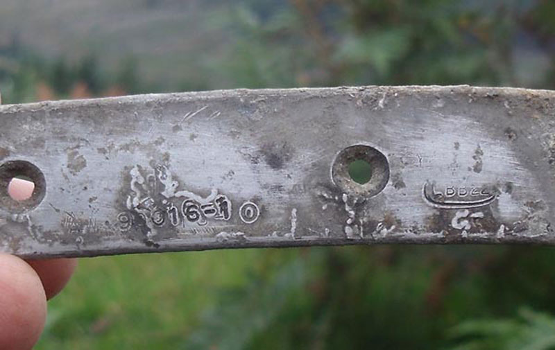This part of the bomb rack was recovered from the crash site in the 1970s by Nick Roberts and, via myself, was donated to The Whitley Project.