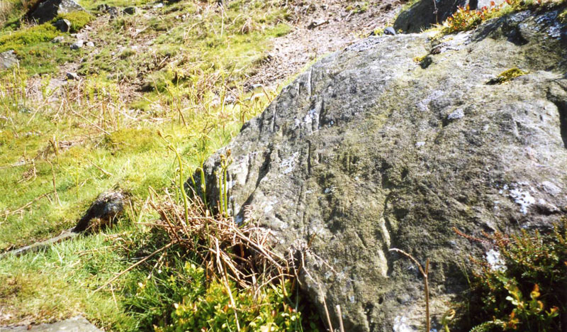 I visited the crash site for the first time in early 2003. Small remains were still to be found above the tree line and marks on rocks appear to have been created by the Whitley running across it (the photograph above shows these marks running bottom to top of the rock). Pine trees were planted just under the crash site after the war and some larger pieces were found in these trees still baring dark green paint. The trees below the crash site were felled in 2011 and I searched the ground after this work for any sign of the aircraft, nothing was found in what was the trees.