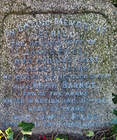 Sgt Files and both his parents are buried in the same grave in Worsley Churchyard by the side of the M60 motorway, their gravestone is located under a large tree which blocked