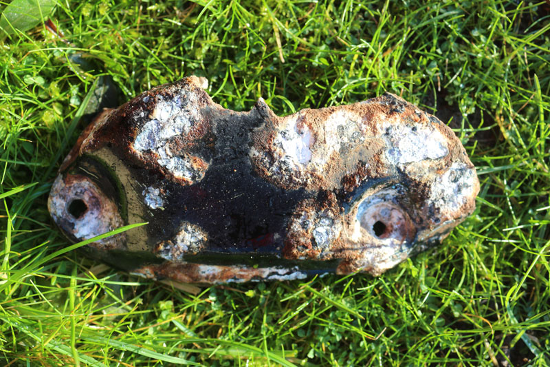 John Skinn and I finally located this crash site in December 2004 having visited the area many times searching for any sign of where the Hudson came down. By contacting others who had also tried to find the site it transpired that very little has ever been found at the site since at least 1980. The main leads to help me track down where my small finds were came via Howard Newbould and Jim Corbett, both had found tiny pieces in a similar area in the 1990s. John Skinn and I searched the same area and found on the surface the remains of just one .303 bullet case and a tiny corroded fragment of alluminium with a single rivet in place. In October 2020 I returned to the site again and owing to some extensive heather burning a few other small parts were seen on the surface. One of these parts was a Wright Cyclone engine rocker cover which I believe would be around the area the aircraft first struck the ground before running alone and coming to rest where our original finds were located.