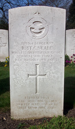 Wireless Operator / Air Gunner - Sgt Ronald St.Clair Neale RAFVR (1375564), aged 27, of Lambeth, London. Buried Newark Cemetery, Nottinghamshire.
